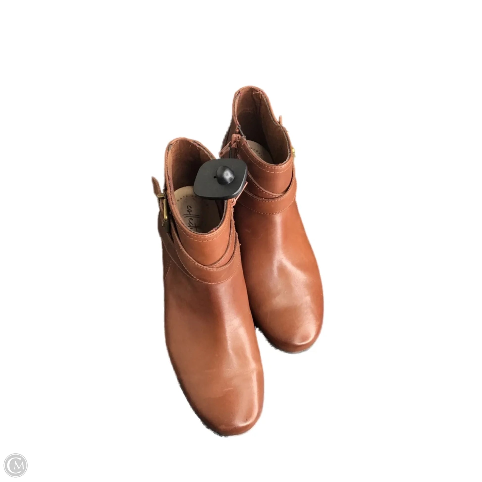 Boots Ankle Heels By Clarks In Brown, Size: 8