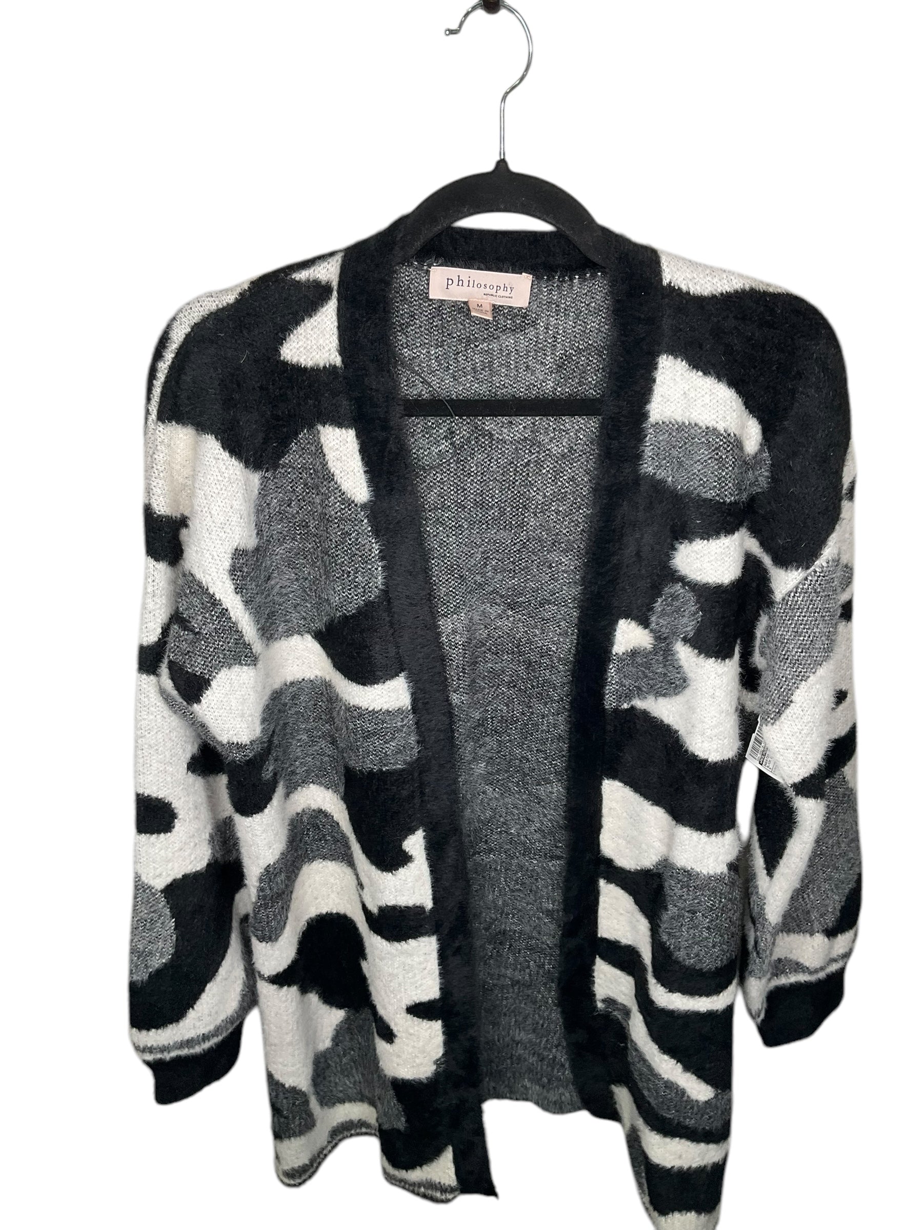 Sweater Cardigan By Philosophy In Black & White, Size: M